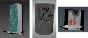 I also do quantitative work for geological materials. This type of scanning has been very project-specific so there isn’t one set analysis or standard, but one example is studying the pore space (void space) in a rock sample. The pore space or porosity is where hydrocarbons are stored so understanding the pore space and its connectivity, or lack of connectivity, is extremely important. Being able to visualize the porosity in 3D with the use of micro-CT is a huge help to researchers.