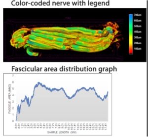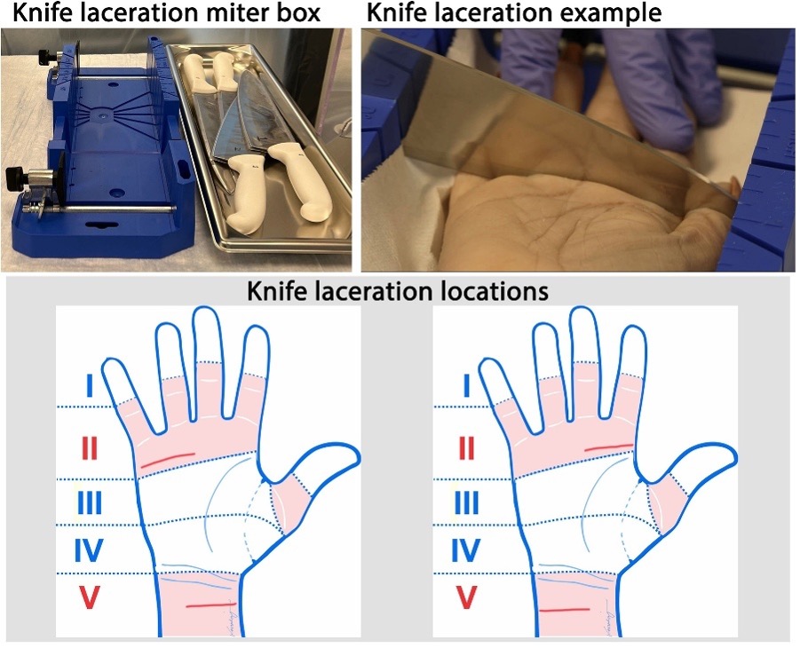 Assessing the zone of injury after traumatic lacerations is incredibly challenging but getting it wrong can have significant impact on nerve repair outcomes. This study used cadaveric specimens to simulate common lacerations using a knife, broken glass, or table saw in flexor tendon zones II or V. The length of nerve damage was visually estimated under loupe magnification by expert nerve surgeons and then compared to micro-computed tomography measurements. Radiographic imaging showed fascicular damage extending beyond the surgeon’s visual assessment of epineural damage, indicating that the internal damage to nerves from traumatic lacerations was underappreciated by surgeons.