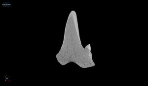 In honor of SharkWeek, we used the power of micro-CT to compare and contrast a modern day shark tooth and a fossilized megalodon tooth. Teeth are important in both modern and fossil studies of sharks and other fish, providing information such as feeding habits, estimations of age, and phylogenetic relationships. Micro-CT is a non-invasive, nondestructive technique that provides 3D studies of mineralized tissues and data on their physical properties. Similarly, micro-CT also has found use in paleontology for the examination of fossils, and has facilitated important developments in paleoanthropology. 1