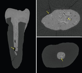 Micro-CT provides 3-dimensional imaging on a small scale with very high resolution, with no sample preparation or slicing. The internal structure of tissue and the internal adaptation of materials to surfaces can be studied non-destructively. Micro-CT has become a standard imaging tool in dental research for many applications, including restorative dentistry (Figure 1), endodontics, tissue engineering, and research on mineral density of hard tissues and bone growth.