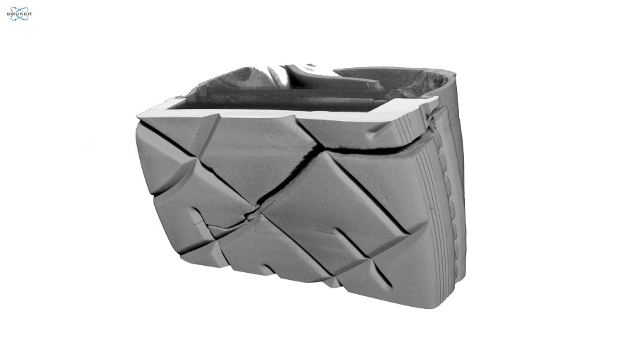 This month we imaged a pair of shoes with both a partial and a full failure of the polymer soles. We used the SkyScan 1273 micro-CT because of the large sample chamber volume, which allowed the shoes to easily fit without further modification. In failure analysis, it is key to minimize any changes to the product during the investigation and the ability to contain the full shoe without modification was central to this work. With the ability to image a sample up to both 10 inches in diameter and height, the SkyScan 1273 was a natural fit.