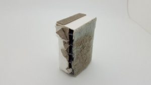 Adding in some color to the image allows us to better visualize the presence of contaminants trapped by the HEPA filter during several months of operation (Figure 5). From this view, small orange spots are present on the inflow side of the filter that air strikes after moving through the pre-filter and activated carbon filter. These same orange spots are not present on the outflow side of the filter, which demonstrates the efficiency of the filter in removing contaminants of this scale.