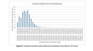 Figure 8: Calculated activated carbon pellet pore distribution from SkyScan 1272 data
